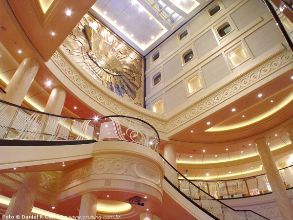 när man stiger ombord. Den är fem däck hög
